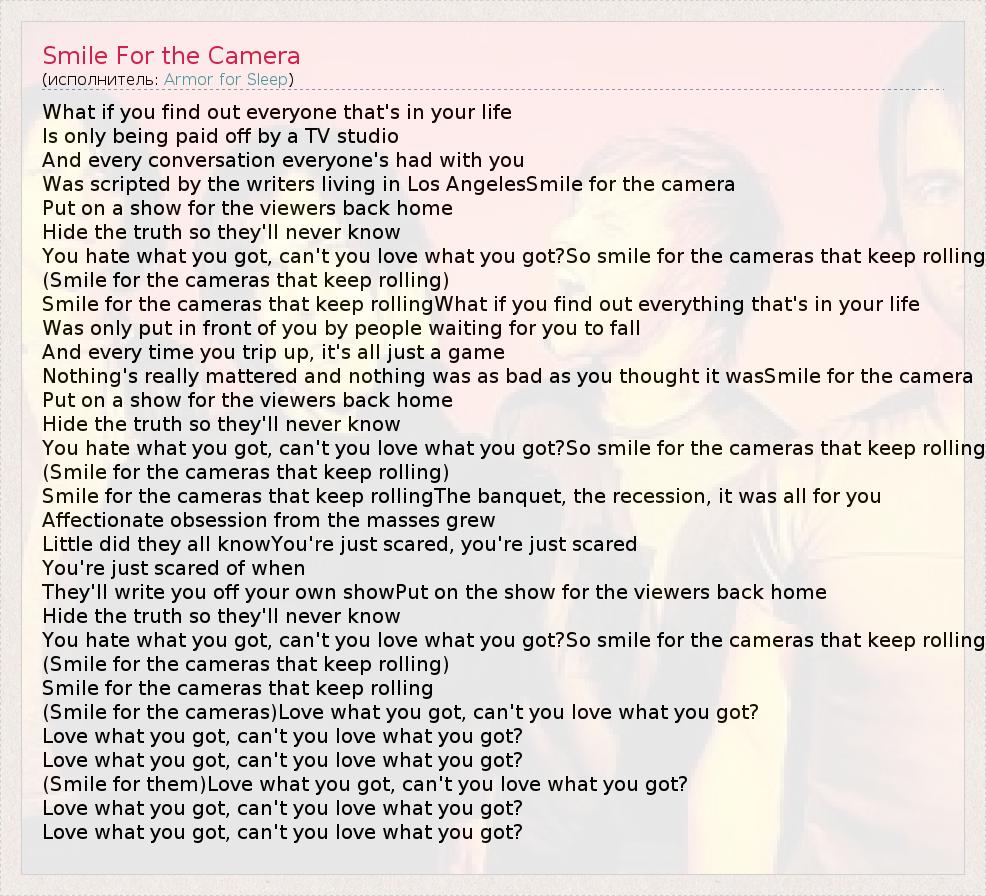 А как ты думаешь, о чем песня "Smile For the Camera" ?