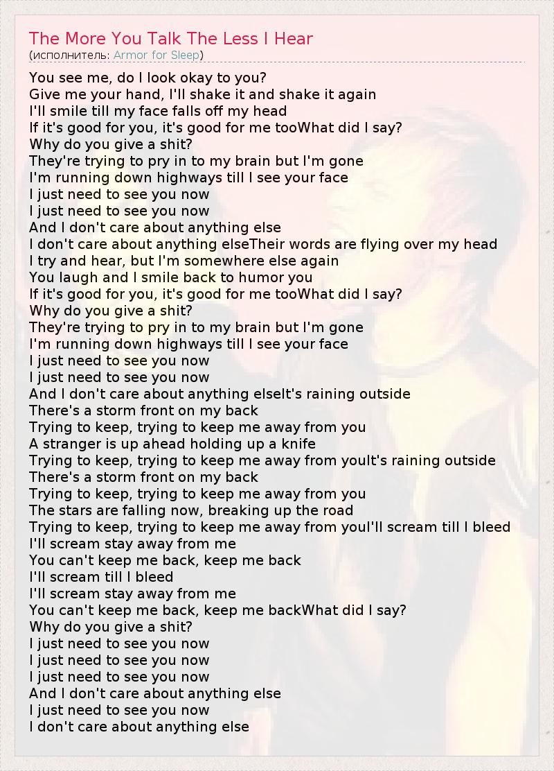 А как ты думаешь, о чем песня "The More You Talk The Less I Hear" ?