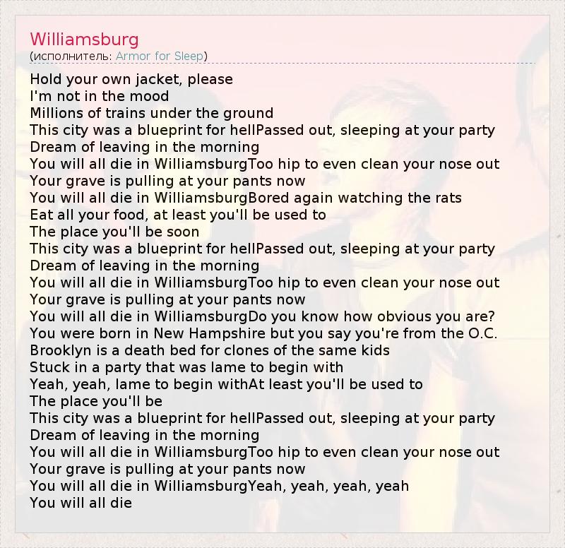 А как ты думаешь, о чем песня "Williamsburg" ?