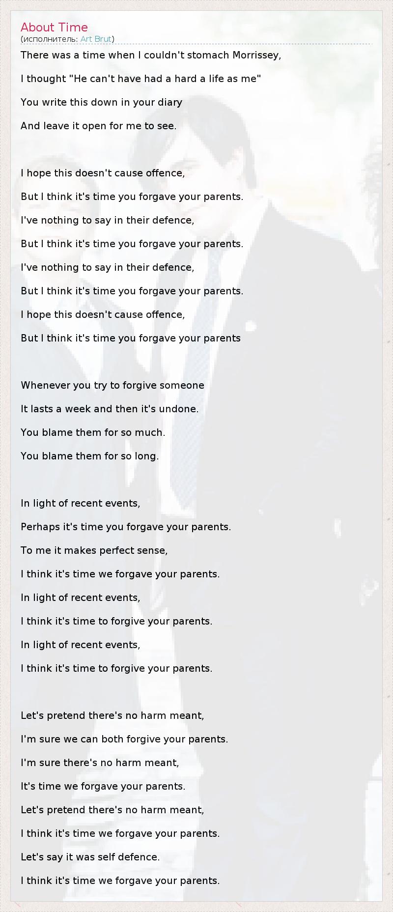 А как ты думаешь, о чем песня "About Time" ?
