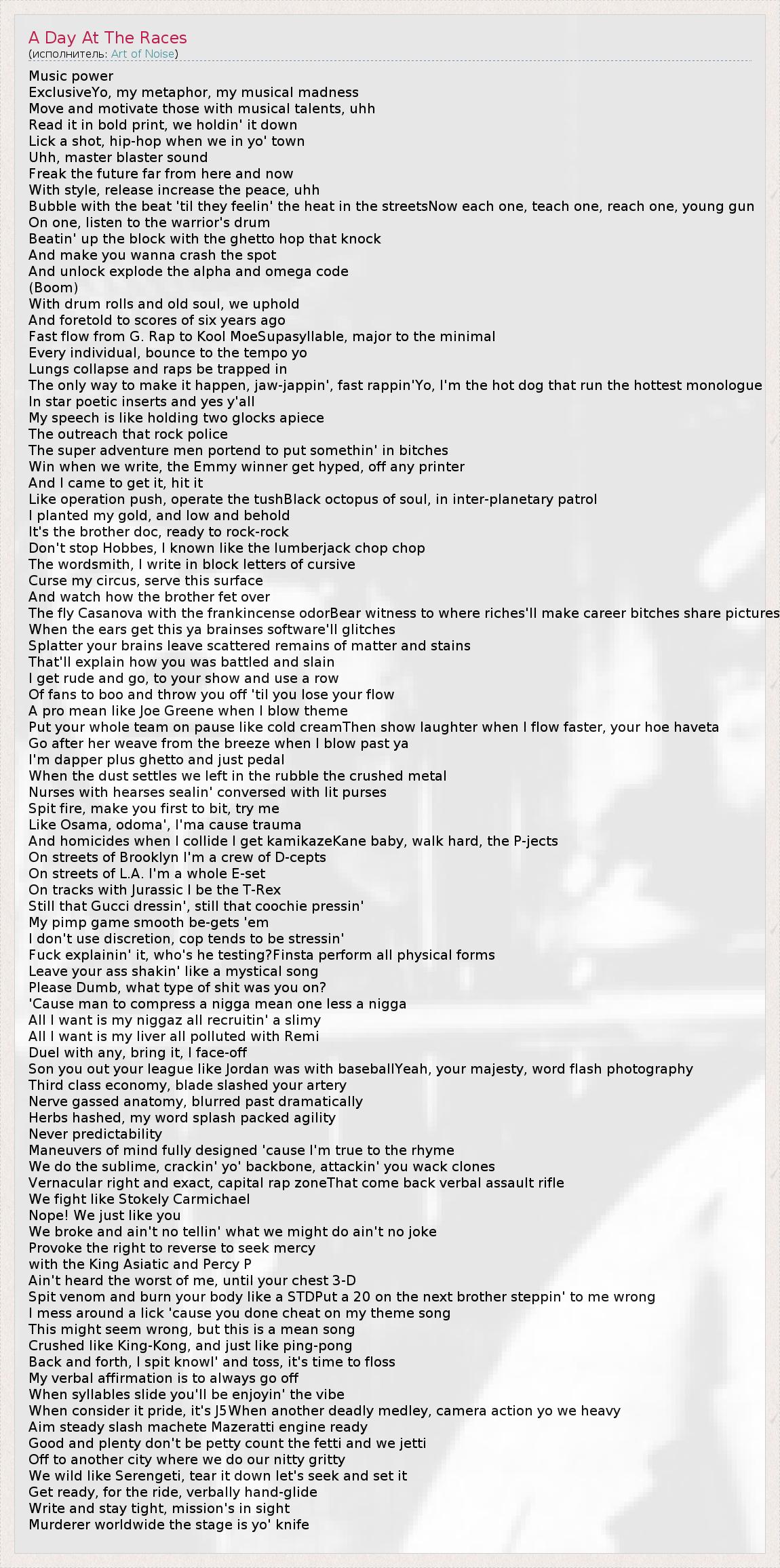 А как ты думаешь, о чем песня "A Day At The Races" ?