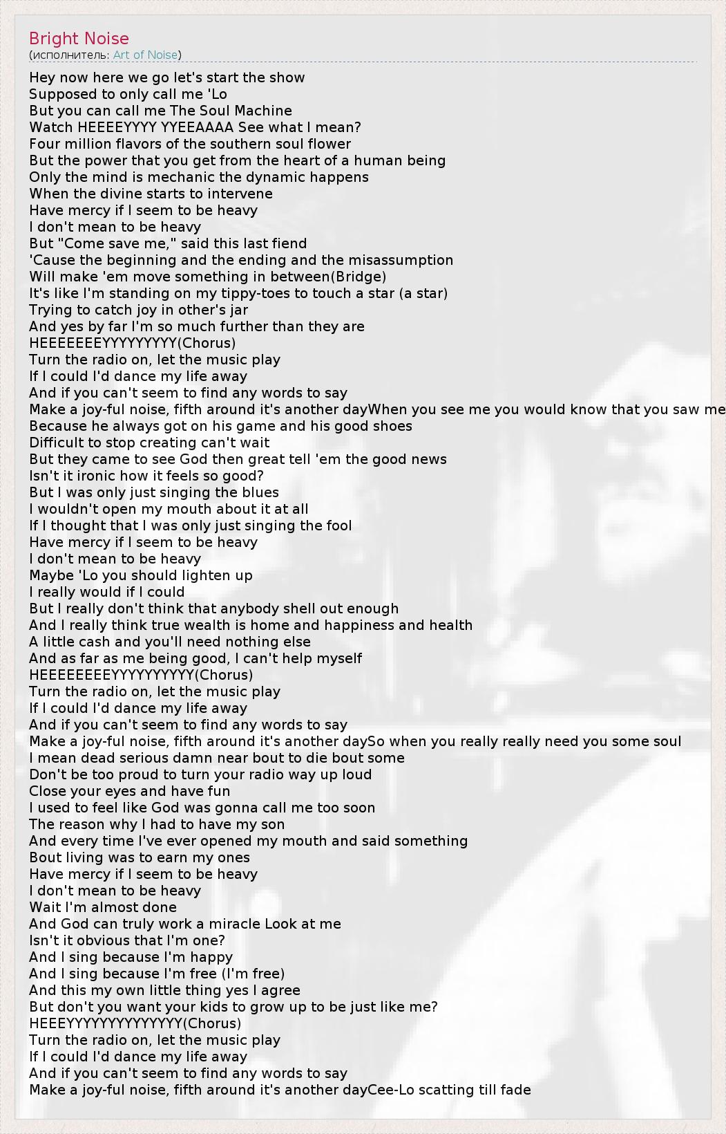 А как ты думаешь, о чем песня "Bright Noise" ?