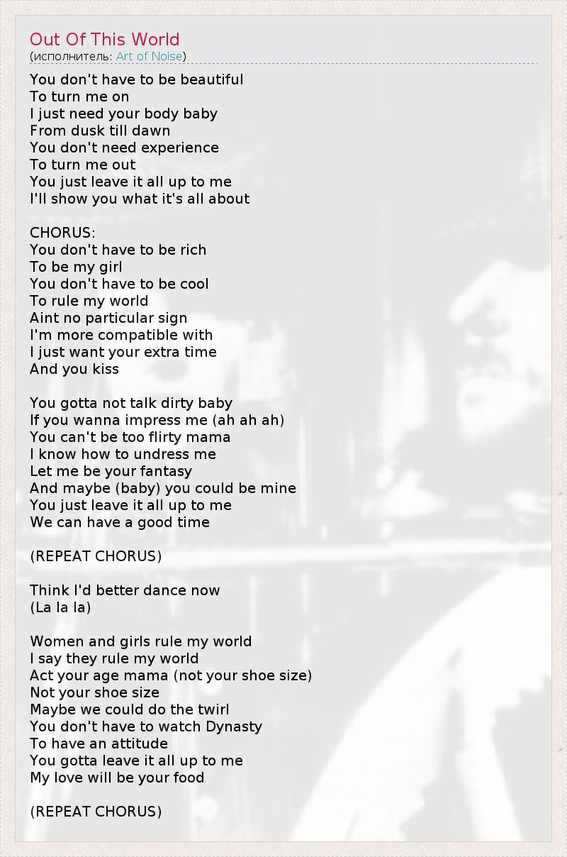 А как ты думаешь, о чем песня "Out Of This World" ?