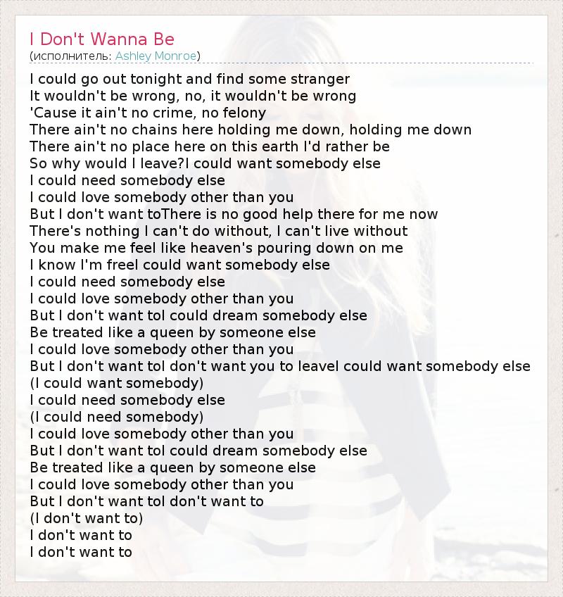 А как ты думаешь, о чем песня "I Don't Wanna Be" ?