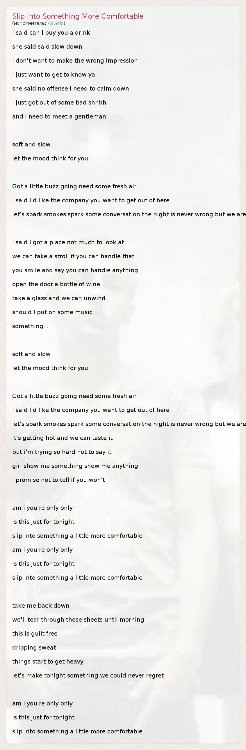 А как ты думаешь, о чем песня "Slip Into Something More Comfortable" ?