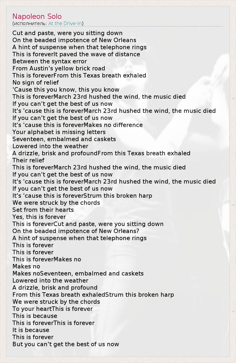 А как ты думаешь, о чем песня "Napoleon Solo" ?