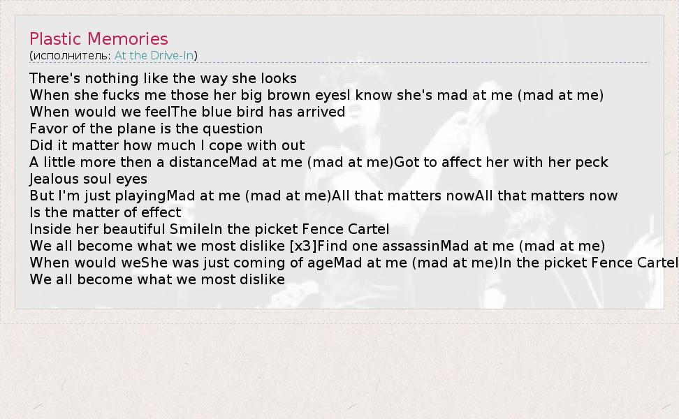 А как ты думаешь, о чем песня "Plastic Memories" ?