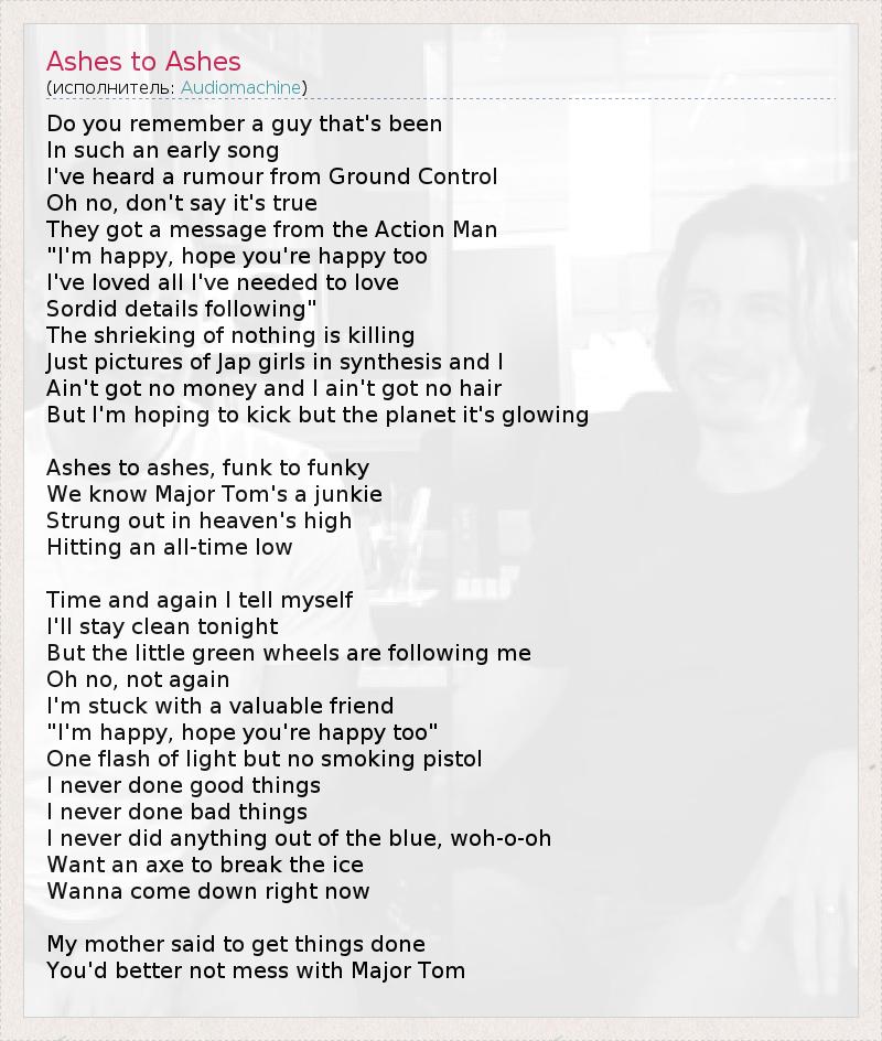 А как ты думаешь, о чем песня "Ashes to Ashes" ?