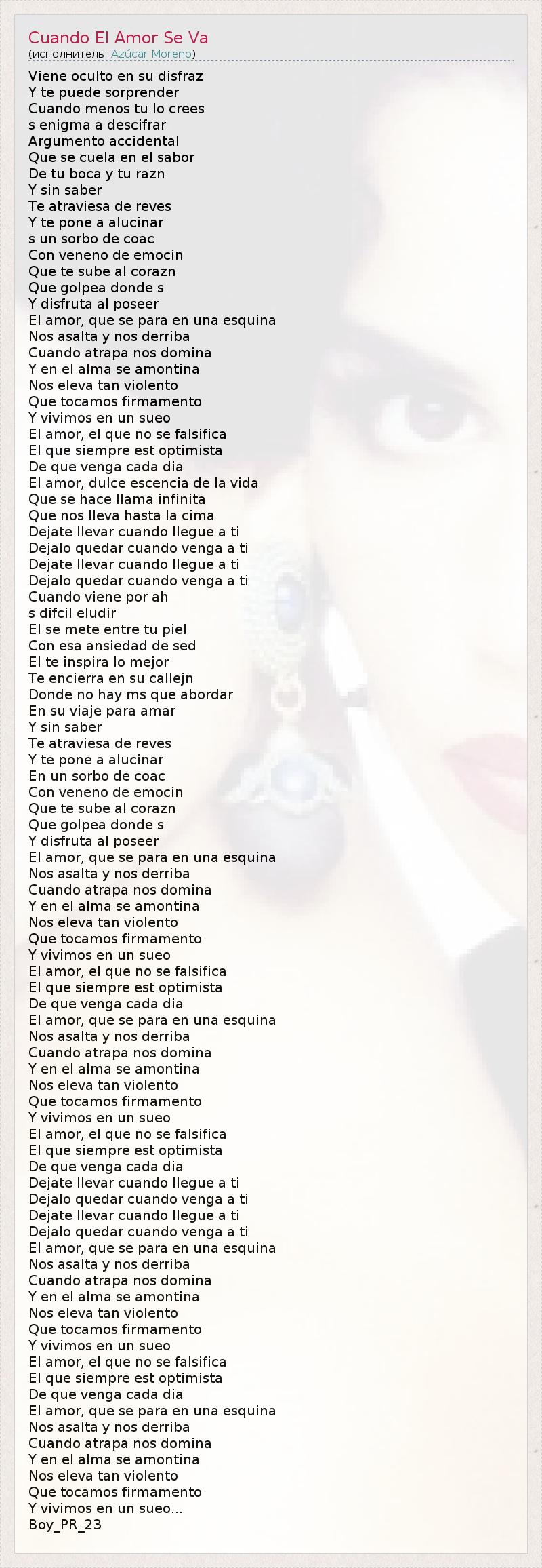 А как ты думаешь, о чем песня "Cuando El Amor Se Va" ?