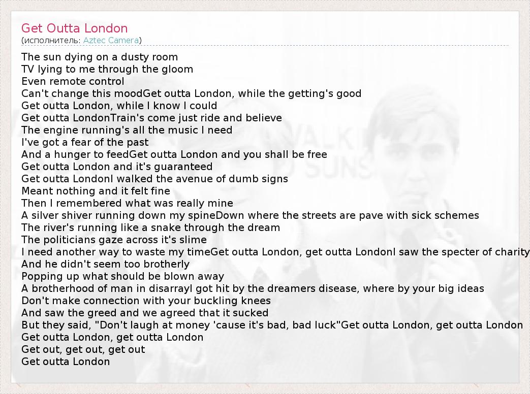 А как ты думаешь, о чем песня "Get Outta London" ?