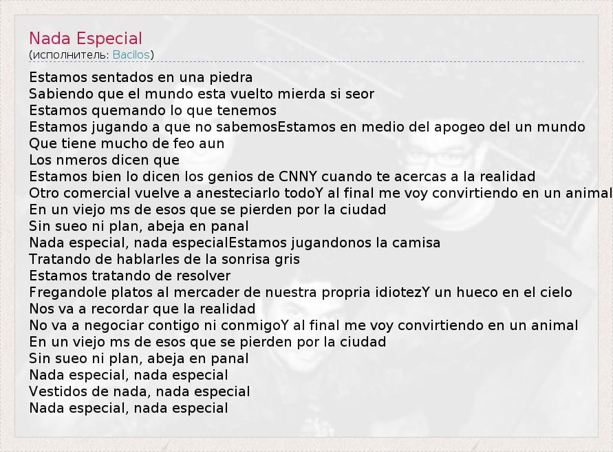 А как ты думаешь, о чем песня "Nada Especial" ?