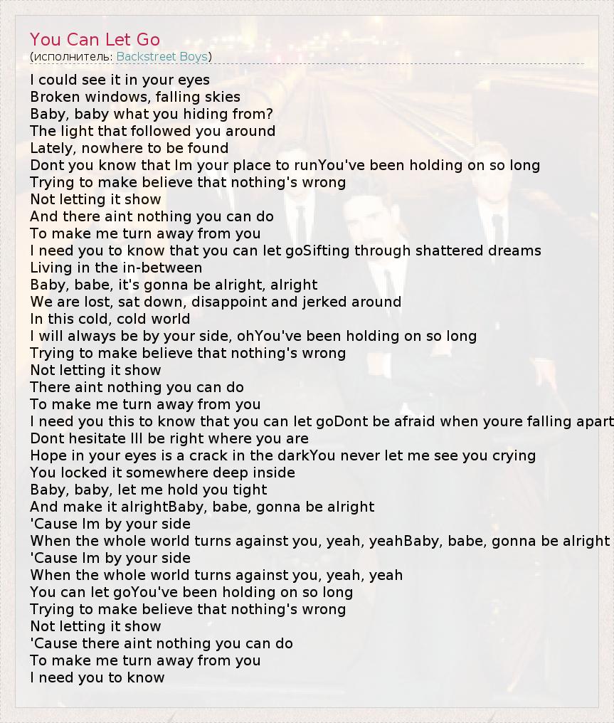 А как ты думаешь, о чем песня "You Can Let Go" ?