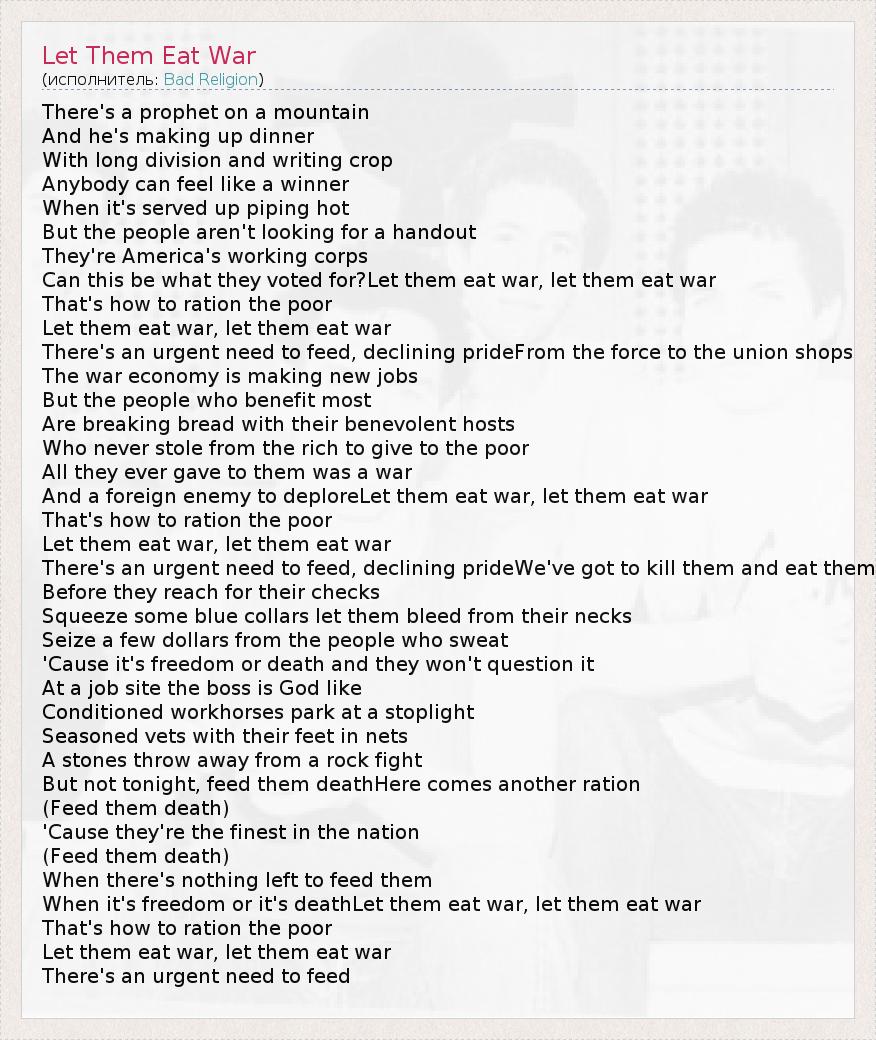 А как ты думаешь, о чем песня "Let Them Eat War" ?