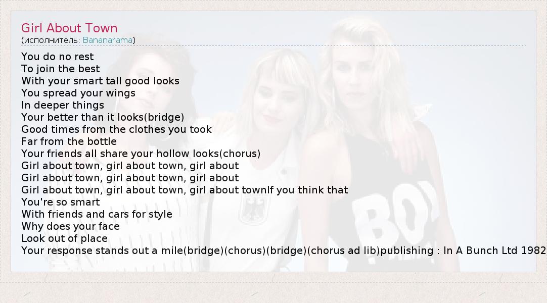 А как ты думаешь, о чем песня "Girl About Town" ?