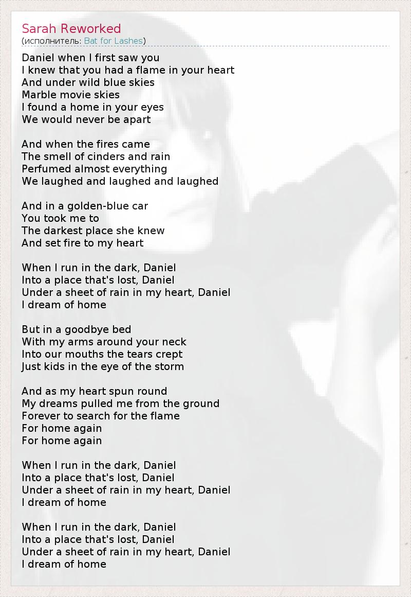 А как ты думаешь, о чем песня "Sarah Reworked" ?