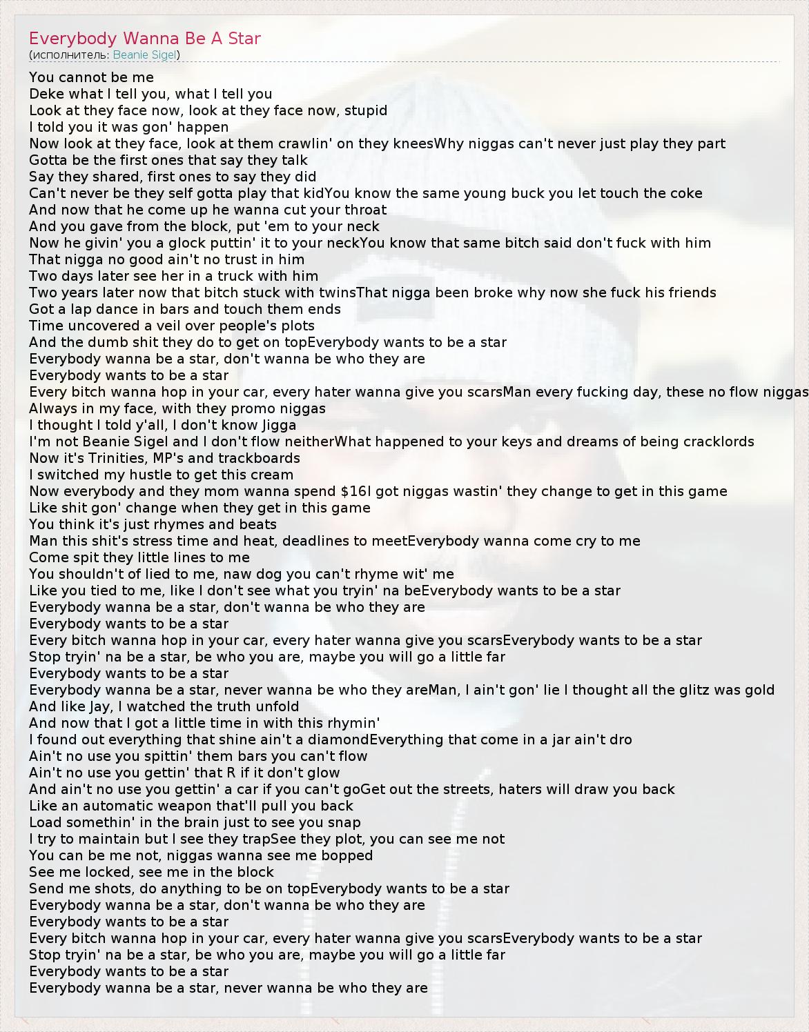 ГлавнаяИсполнителиBeanie SigelEverybody Wanna Be A Star