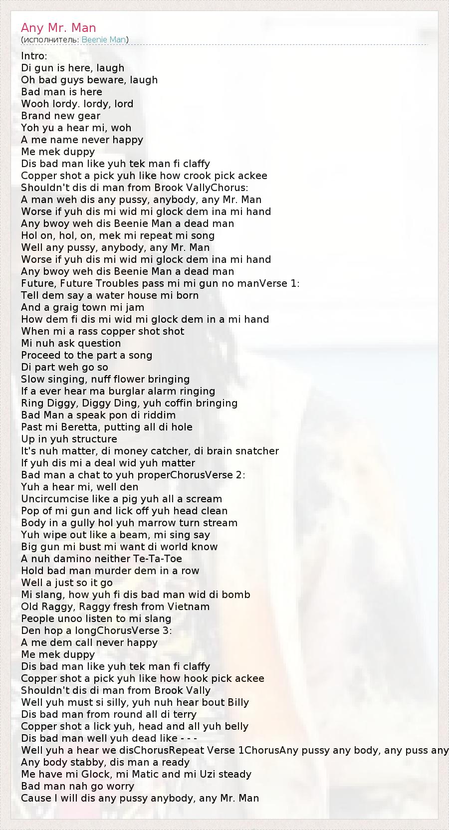 А как ты думаешь, о чем песня "Any Mr. Man" ?