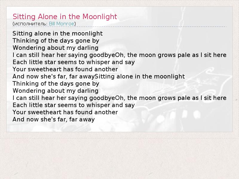 А как ты думаешь, о чем песня "Sitting Alone in the Moonlight" ?
