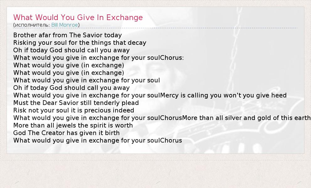 А как ты думаешь, о чем песня "What Would You Give In Exchange" ?