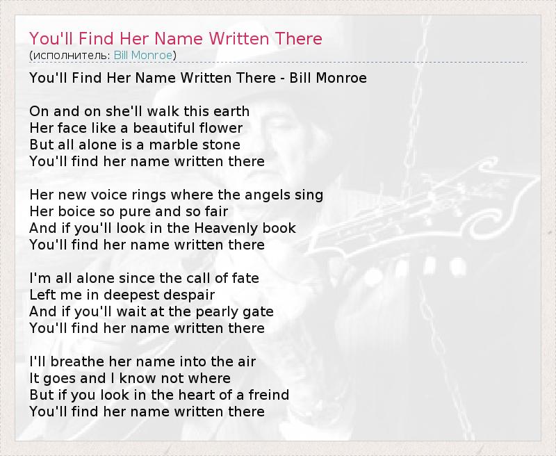 А как ты думаешь, о чем песня "You'll Find Her Name Written There" ?