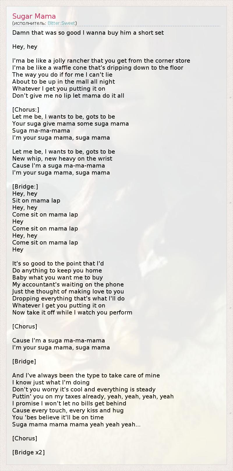 А как ты думаешь, о чем песня "Sugar Mama" ?