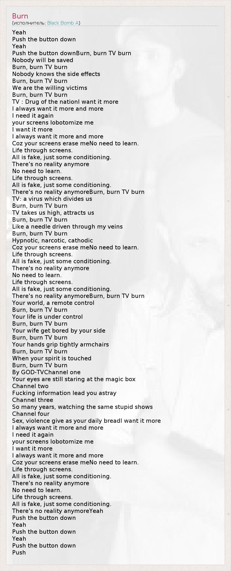 Это интересно:Black Bomb A – французская хардкор-группа, в состав которой входят шестеро уроженцев города Вирофлё: Jag и Poun (вокал), Scalp и Snake (гитары), Mario (бас) и Herve (барабаны).Несмотря на свою национальность, подавляющее большинство своих песен, Black Bomb A исполняют на английском языке. Образованные в 1995 году, Black Bomb A выпускают свою первую демо-пластинку, получившую название Straight In The Vein, включающую в себя 5 треков,... продолжение