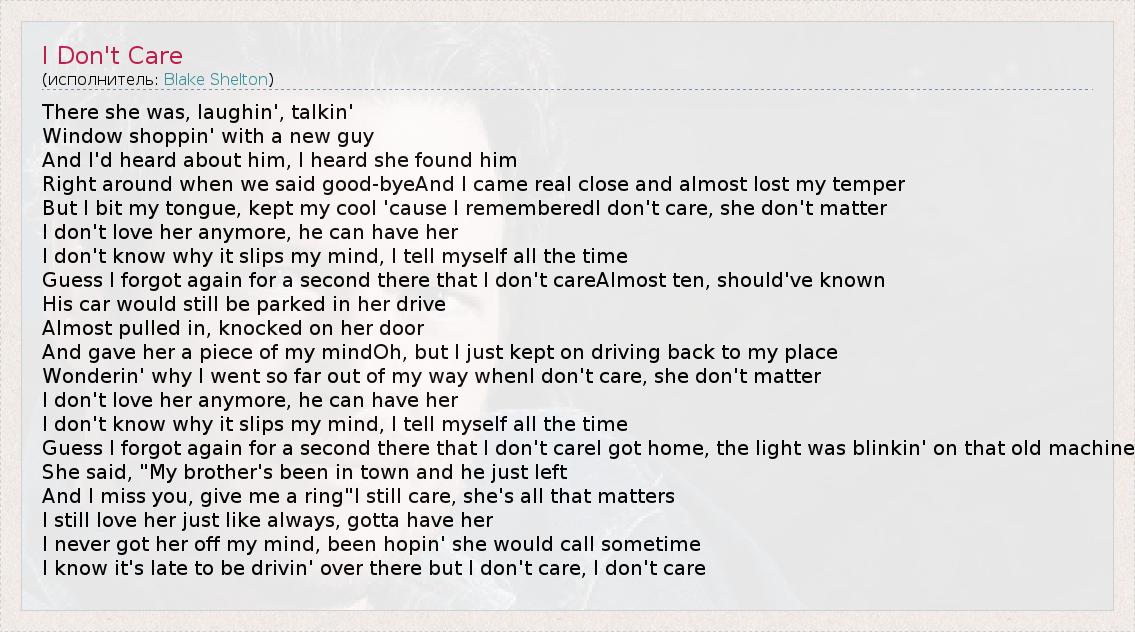 А как ты думаешь, о чем песня "I Don't Care" ?