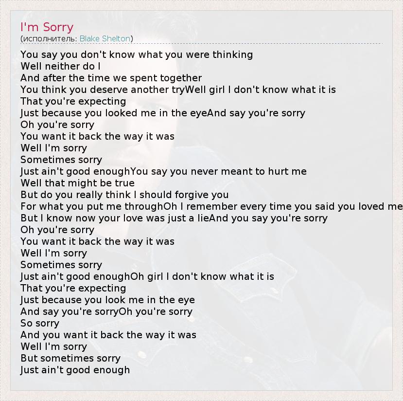 А как ты думаешь, о чем песня "I'm Sorry" ?