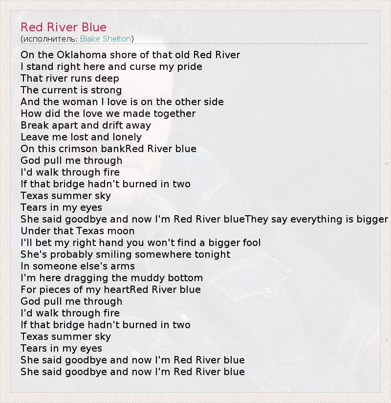 А как ты думаешь, о чем песня "Red River Blue" ?