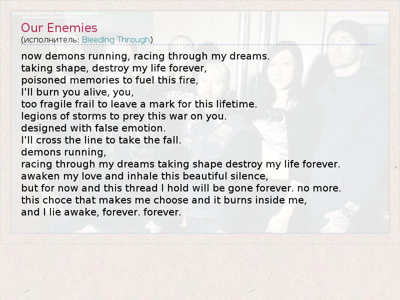 А как ты думаешь, о чем песня "Our Enemies" ?
