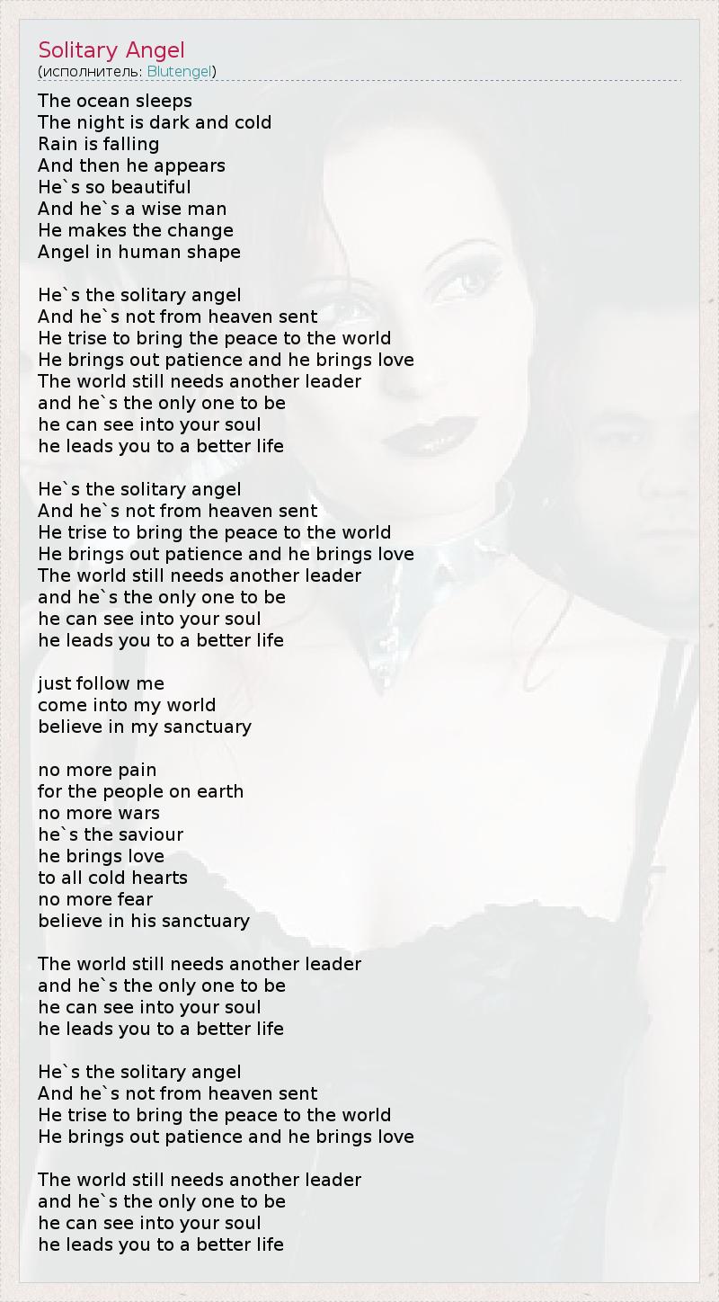 А как ты думаешь, о чем песня "Solitary Angel" ?