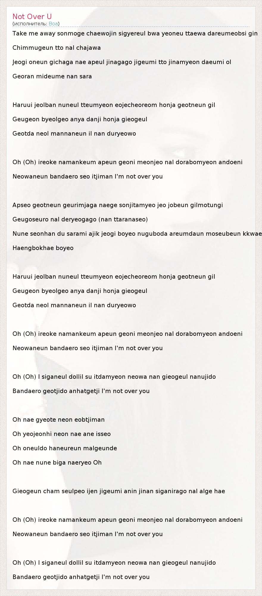 Это интересно:Квон Боа (кор. 권보아, род. 5 ноября 1986), более известная под своим творческим псевдонимом BoA — корейская певица, известная в Южной Корее и в Японии. Родилась и была воспитана в городе Кури, провинции Кёнгидо, в Южной Корее. Широкая известность к певице пришла после подписания ей контракта с компанией SM Entertainment, которая нашла её, когда она вместе со своим старшим братом пришла на пробы «поиска... продолжение