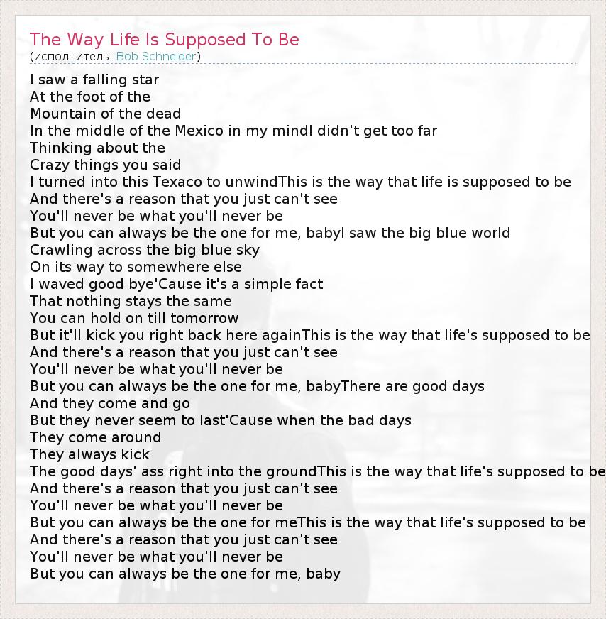 А как ты думаешь, о чем песня "The Way Life Is Supposed To Be" ?