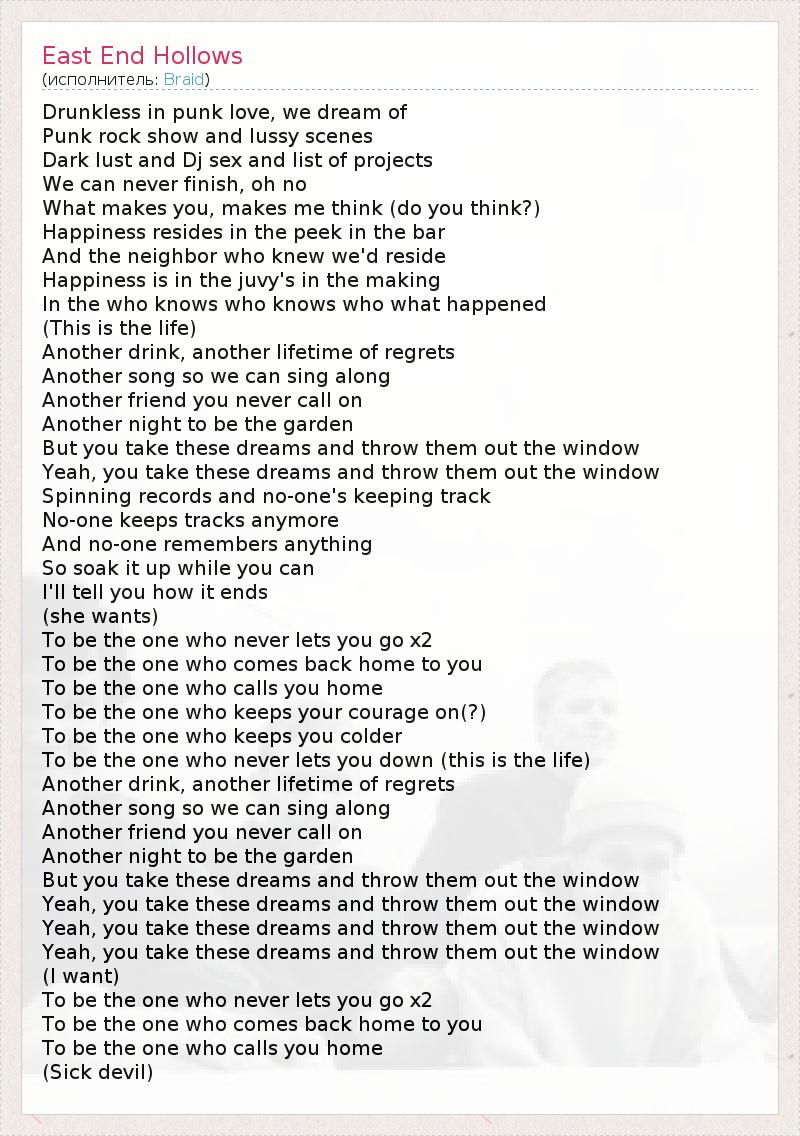 А как ты думаешь, о чем песня "East End Hollows" ?