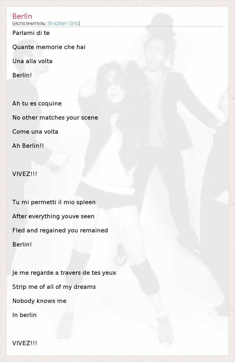 А как ты думаешь, о чем песня "Berlin" ?