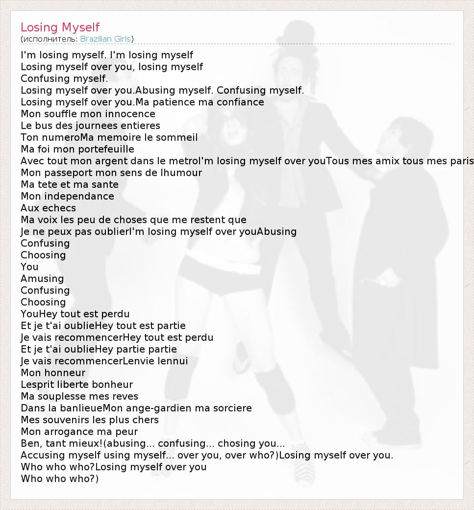 I'm losing myself. I'm losing myself