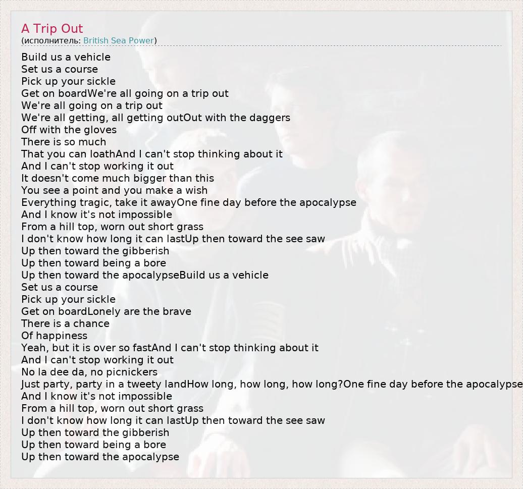 А как ты думаешь, о чем песня "A Trip Out" ?