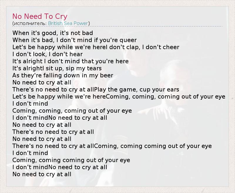 А как ты думаешь, о чем песня "No Need To Cry" ?