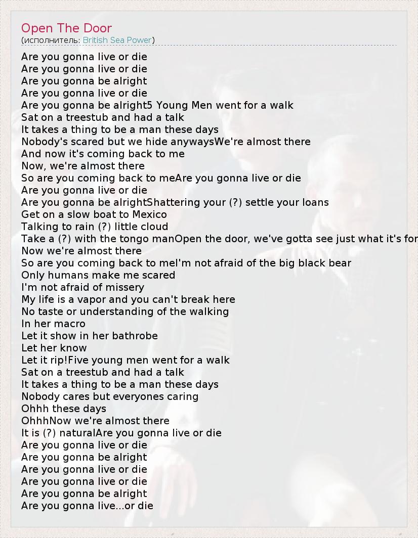 А как ты думаешь, о чем песня "Open The Door" ?