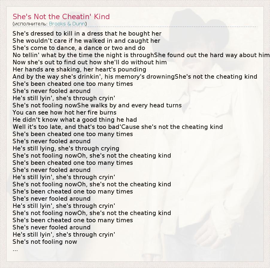 А как ты думаешь, о чем песня "She's Not the Cheatin' Kind" ?