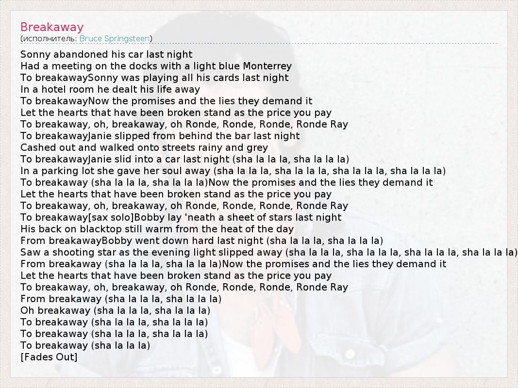 А как ты думаешь, о чем песня "Breakaway" ?