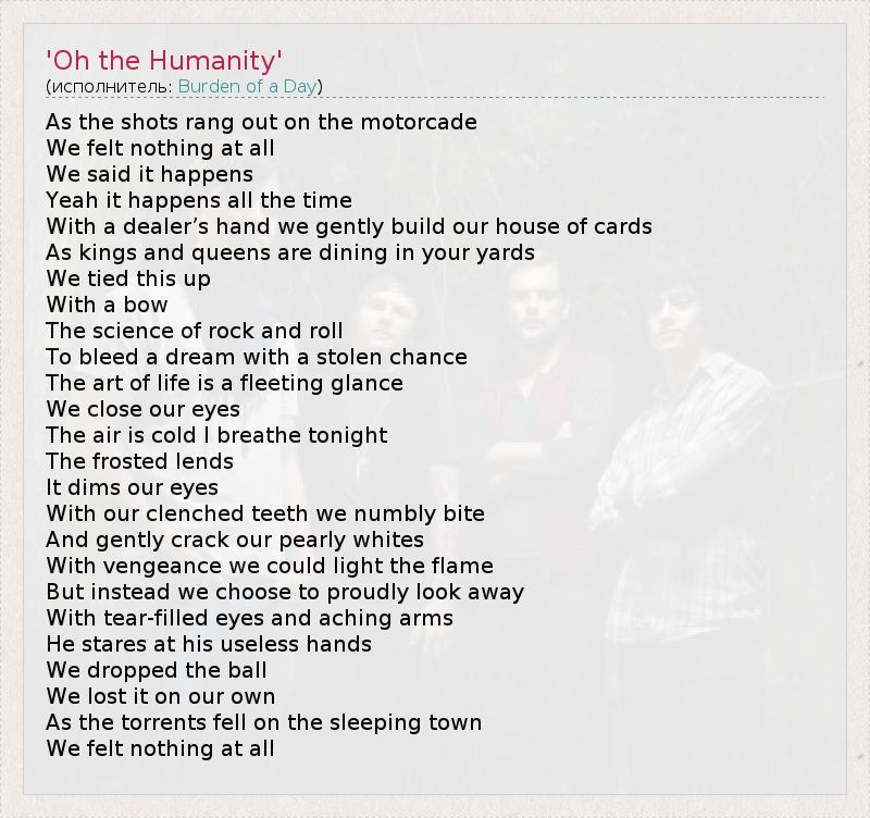 А как ты думаешь, о чем песня "'Oh the Humanity'" ?