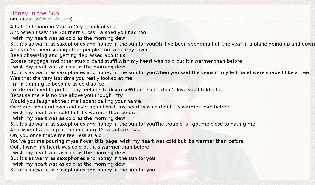А как ты думаешь, о чем песня "Honey in the Sun" ?