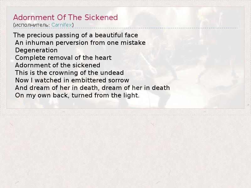 А как ты думаешь, о чем песня "Adornment Of The Sickened" ?