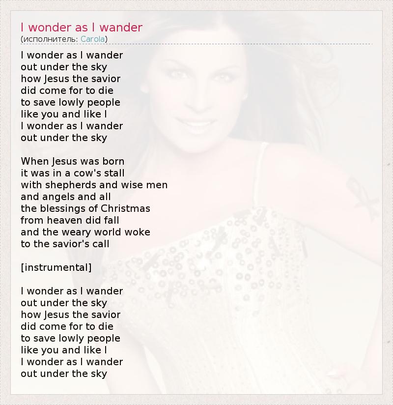 А как ты думаешь, о чем песня "I wonder as I wander" ?