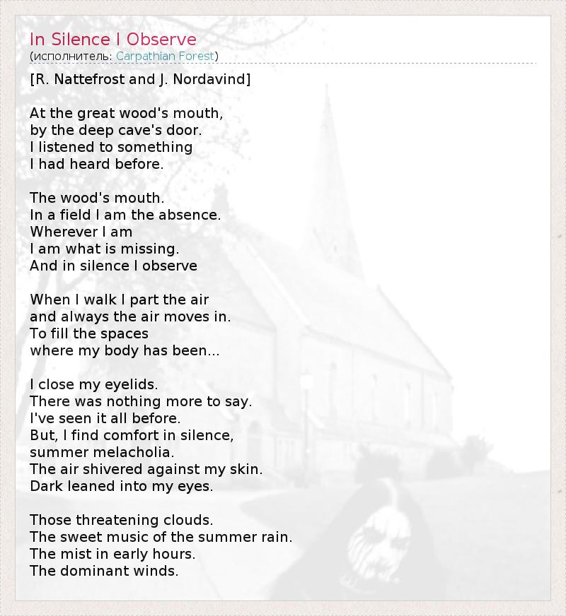А как ты думаешь, о чем песня "In Silence I Observe" ?