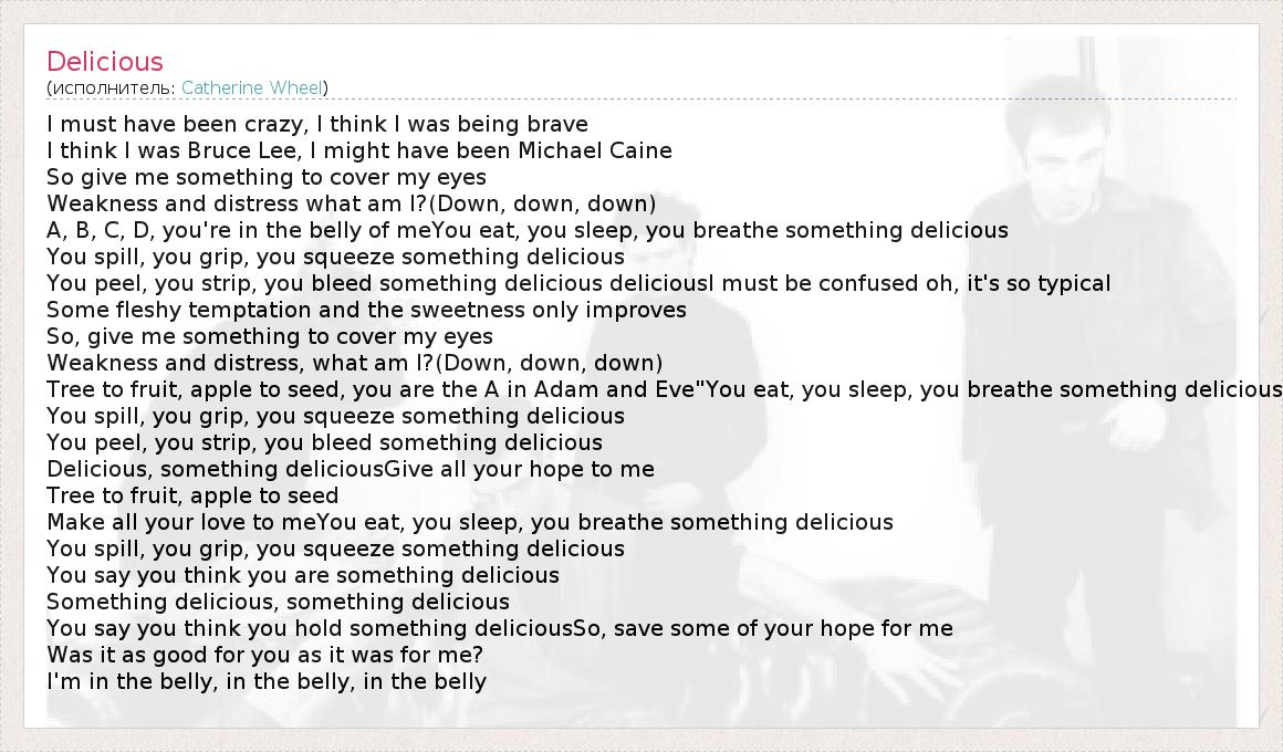 A, B, C, D, you're in the belly of meYou eat, you sleep, you breathe something delicious