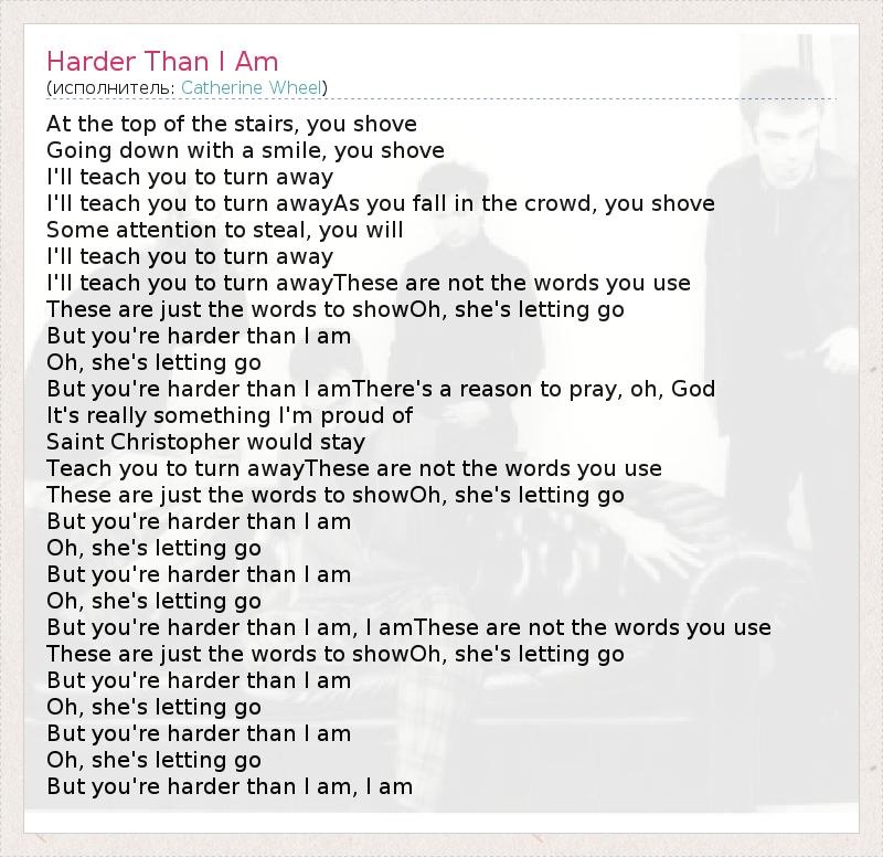 А как ты думаешь, о чем песня "Harder Than I Am" ?