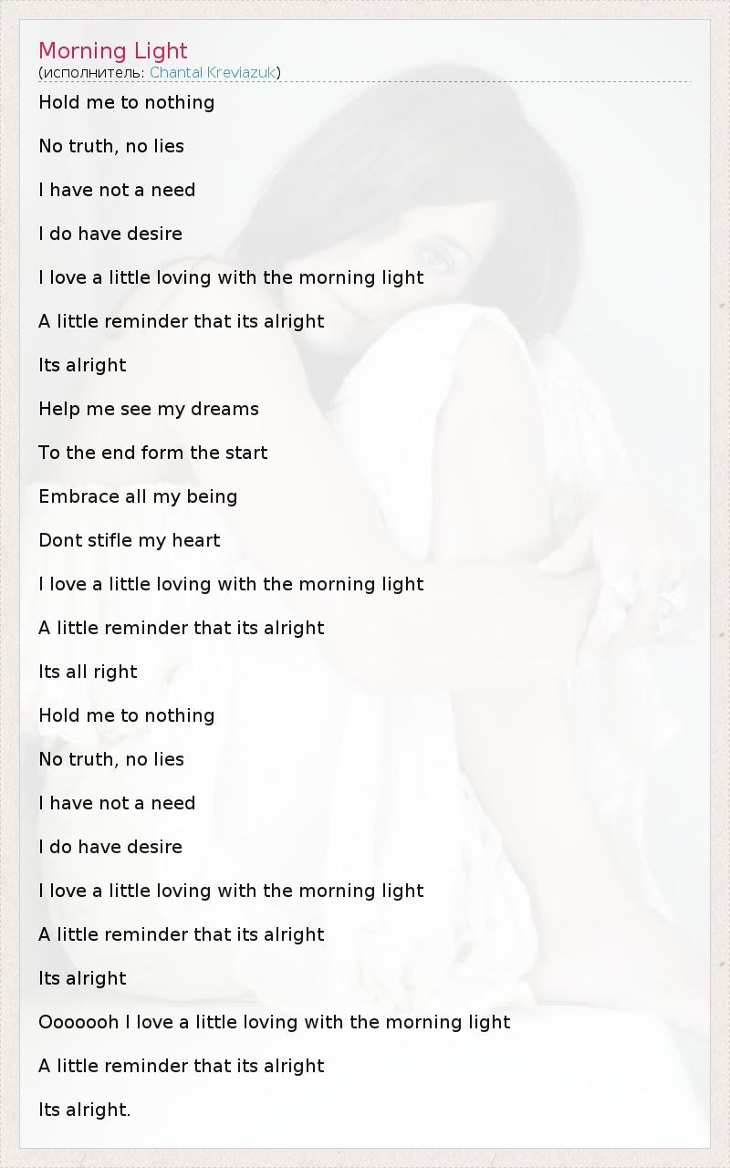 Это интересно:Наверное, такую музыку комфортнее всего слушать в приятном одиночестве. Канадская пианистка и певица Шантал пишет песни таким разбитным девчонкам, как Avril Lavigne и Kelly Clarkson, зато к своему творчеству подходит прямо-таки с интимной осторожностью. Ее сольные треки требуют не разового беглого прослушивания по дороге в институт или в автомобильной пробке. Шантал любит серьезные оркестровые... продолжение