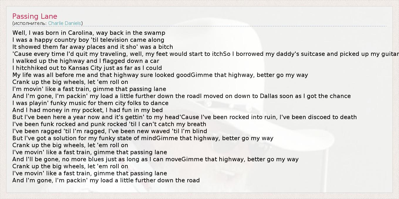 А как ты думаешь, о чем песня "Passing Lane" ?